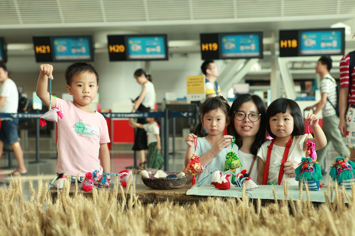 6月15日,“邂逅·浙江非遺藝術(shù)”之“邂逅浪漫空港,遇見(jiàn)非遺端午”活動(dòng)在T3航站樓出發(fā)層舉行。在雅致的現(xiàn)場(chǎng)古琴演奏下,旅客們穿梭在翻滾涌動(dòng)的金色麥浪中,休憩在蒲團(tuán)上觀看非遺文化紀(jì)錄片,欣賞粽子、香囊等別致的端午文創(chuàng)作品。