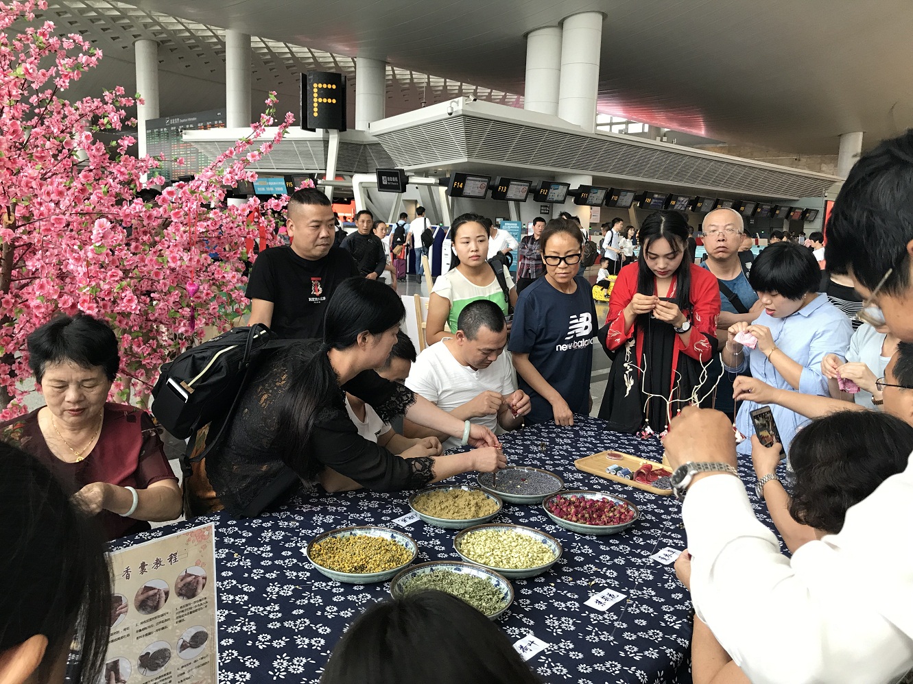 6月7日,在T1航站樓9號門旁開展了“粽情端午,情寄香囊”端午節(jié)文化活動。活動圍繞端午佳節(jié)縫香囊、寄相思的傳統(tǒng)民俗文化,立足文化傳承、振興非遺的航站樓文化氛圍定位,組織開展了“巧手縫香囊”、“祈福頌情”、“粽情速影”等旅客互動活動,身著漢服的工作人員們翩翩起舞帶來精彩的漢服表演,并教授旅客縫制香囊,將端午傳統(tǒng)文化習(xí)俗引入航站樓,進(jìn)一步豐富旅客乘機(jī)體驗(yàn)。