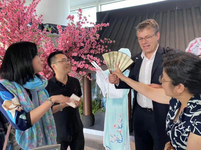 9月26日,為慶祝全國首個“工匠日”活動,在航站樓開展了“致敬匠心、傳承非遺”為主題的禮贊工匠活動。悠悠的宋韻小唱、越劇經典曲目開啟了旅客的杭州歷史文化之旅。在新一期“南宋有約”文化長廊內,旅客們親手體驗了扇藝、草木染、旗袍、宋酒等非遺匠人帶來的傳統活態手工藝,在旅程起點感受浙江非遺文化的傳統魅力。