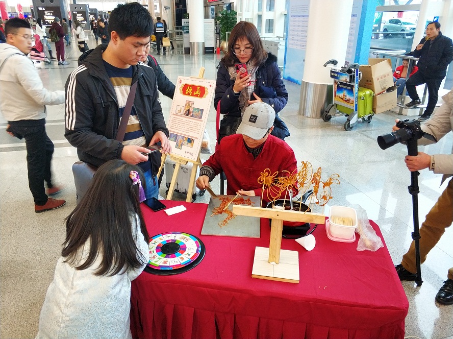 2020年春運(yùn)如火如荼展開,杭州蕭山國(guó)際機(jī)場(chǎng)“幸福起航”春運(yùn)品牌活動(dòng)成為了今年航站樓春運(yùn)的文化新亮點(diǎn)。1月10日至18日期間,紅墻祈福、福鼠合影、互動(dòng)抽獎(jiǎng)、書法家贈(zèng)福、非遺民俗等活動(dòng)輪番上陣,航站樓內(nèi)年味十足,吸引了大批旅客駐足參與。為進(jìn)一步弘揚(yáng)地域傳統(tǒng)文化,活動(dòng)現(xiàn)場(chǎng)更有四項(xiàng)傳統(tǒng)手藝傳承人驚喜現(xiàn)身,展現(xiàn)扎染、剪紙、制作糖人和皮影戲四項(xiàng)民俗技藝,讓旅客親手制作一份傳統(tǒng)民俗小禮,帶著溫暖和祝福回家。