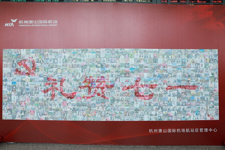 建黨99周年之際,航站區中心在T3航站樓出發層11號門內開展了為期三天的“禮贊七一”大型拼圖互動活動。690名旅客的笑臉照片組成了本次活動DE 主題——“禮贊七一”,成為了航站樓內一道奪目的紅色人文景觀。