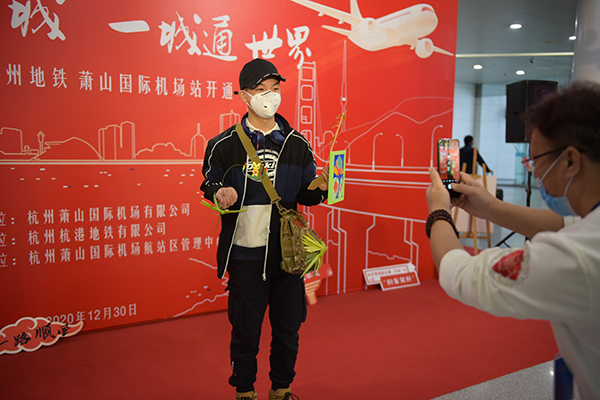 當(dāng)日,為慶祝杭州機(jī)場(chǎng)正式開通地鐵,航站區(qū)中心在T3航站樓內(nèi)開展“一線連全城 一城通世界”文化主題活動(dòng)。活動(dòng)邀請(qǐng)了“糖畫”“草編”“捏面人兒”“水印畫”等四位杭州非遺傳承人到現(xiàn)場(chǎng)與旅客進(jìn)行互動(dòng),傳授制作技巧,贈(zèng)送手工藝品,讓旅客感受杭州地域文化。首位搭乘地鐵前來(lái)機(jī)場(chǎng)的旅客被邀請(qǐng)至活動(dòng)現(xiàn)場(chǎng),并獲得精美禮品。此外,活動(dòng)現(xiàn)場(chǎng)還設(shè)置了拍照打卡背景墻。(李俊杰 任嘉婷)