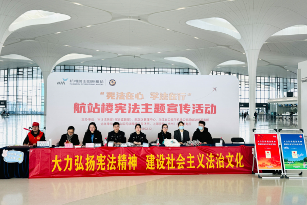 12月27日,為全面貫徹黨的二十大精神,深入學習宣傳貫徹習近平法治思想和習近平文化思想,航站區(qū)中心聯(lián)合審計法務部、機場公安、靖江司法所、上海宇鈞(杭州)律師事務所一同開展憲法主題宣傳活動。