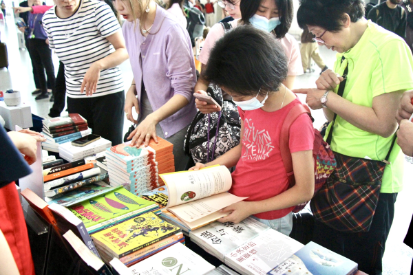 在人來人往的T3出發大廳,現場剛架起書攤,就吸引了一大波旅客。互動抽獎活動不僅有免費的書籍贈送,還有機會抽中香氛盲盒、民航周邊小禮物。打撈歷史中被遺忘女性的《鹽鎮》、描摹“內向一代”內心世界的《隱語》、被改編成大熱電視劇的教育類讀物《小舍得》、在懸念中勾勒小人物心路歷程的《白鳥墜入密林》、講述愛與勇氣的兒童文學《小門牙》……不同類型的春風好書,為一次普通的空中旅程增添了別樣的色彩。