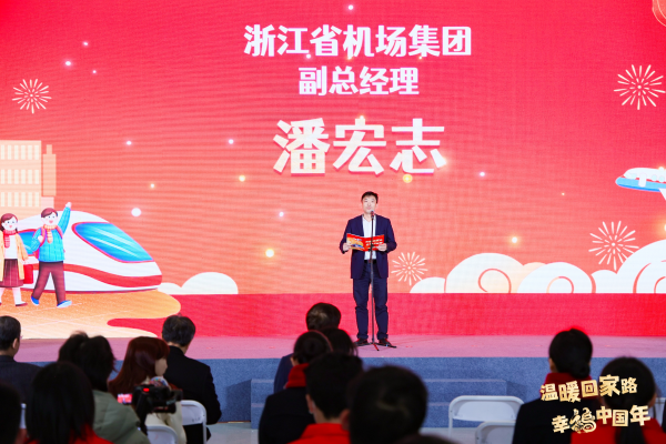 當天上午9時許,省交通廳、省社工部、浙江廣電集團、省機場集團、建行浙江省分行、人保浙江省分公司等單位共同在T4出發大廳中庭啟動2025“溫暖回家路”公益行動。