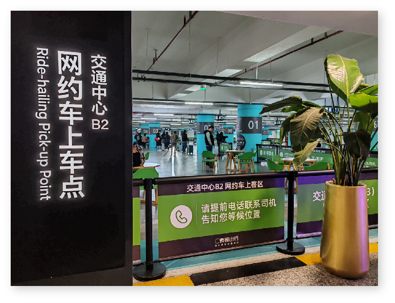 1.網(wǎng)約車上客區(qū)設(shè)有旅客休息區(qū),配備休息桌椅、自動售貨機、飲用水、網(wǎng)約車輛進場信息智慧屏等設(shè)施供旅客使用。