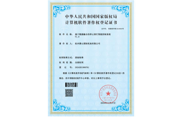 飛行區(qū)中心“基于數(shù)據(jù)融合的停止排燈智能控制系統(tǒng)V1.0”獲計(jì)算機(jī)軟件著作權(quán)