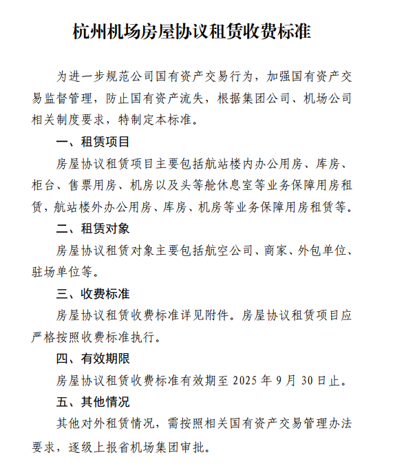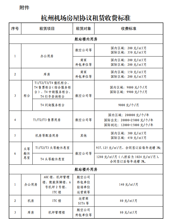 杭州機(jī)場(chǎng)房屋協(xié)議租賃收費(fèi)標(biāo)準(zhǔn)